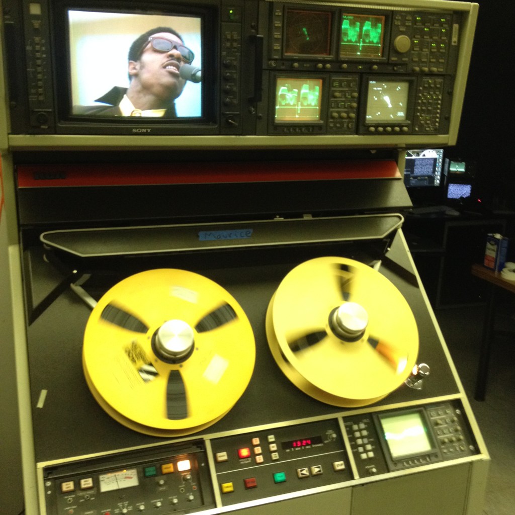 Before Tulchin died in September 2017, Fyvolent exercised his option and formed Mass Distraction Media to produce a documentary, probably bringing in Joe Kamen and RadicalMedia soon after, since that company asked the AMIA Listserv for suggestions to do transfer work on 2” Quads. Since Schechter Engineering had purchased DuArt’s video lab, Maurice Schechter and Bill Seery of Mercer Media were contracted to transfer all surviving 2” and 1”, baking and cleaning the quads to mitigate any back coat issues and from the decomposed foam seals of the Scotch Aqua shipping cases. The 1″ tapes had the Scotch flange removed. The analog video output of the quad was fed into a Snell and Wilcox decoder, which created a 10bit uncompressed SDI stream. This was a huge challenge since detail from the 4 tube cameras can create a mirage of visual artifacts, dot crawl, cross color, and loss of resolution. After several more steps to capture the audio. the SDI signal was captured by AJA to a 10bit uncompressed interlaced NTSC / 24bit 48Khz PCM quicktime file. Unfortunately, some of the performances had been on the lost 14 tapes. Fortunately, Schechter found the hard drives from the 2011 transfers and donated them to Radical. At this point director Questlove was brought in to supervise color timing and editing.