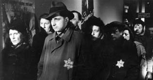 In adapting the Gottschalk story to film, Kurt Maetzig probably intuitively understood that only a melodramatic treatment about a tragic film star could reach a primarily female audience hardened by twelve years of anti-Semitic propaganda. Interestingly, Maetzig who was himself blacklisted by the Nazis in 1935, and whose Jewish mother committed suicide in 1944, moved the fictional couple’s suicide to 1943, probably so he could portray the effects of the Allied bombing of Berlin (blamed on the German Fascists) and the deportations of Berlin’s Jews, which only began days before the Gottschalks killed themselves. Simultaneously, Maetzig limits his visualization of Nazism to a few brief shots: the Brownshirts marching in 1933, a single S.A. man ordering civilians to loot Jewish shops on 9 November 1938, while several SS types appear during the final premiere; furthermore, Hans imagines Elisabeth’s deportation and incarceration in a camp by the SS, but in contrast to the reality of the 3rd Reich, there are no Swastikas visible, and only two tiny Nazi Party pins. Two years after the end of German fascism, such symbols may have been too potent, possibly calling forth positive rather than negative reactions. Ironically, this dearth of Nazi symbols reinforces the film’s thesis that the German middle class, especially artists, were collectively guilty of turning a blind eye to Jewish suffering and opportunistically refusing to resist fascism.