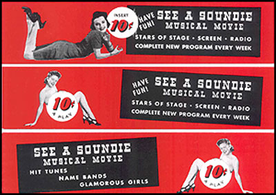 While the 3000 to 4500 Panoram movie jukebox machines were manufactured by the Mills Novelty Company of Chicago, the Soundies films were produced by affiliated subsidiaries, like RCM Productions in Hollywood and Minoco Productions in New York, and distributed by the Soundies Distributing Corporation of America, another subsidiary of Mills Novelty. Placed in bars, restaurants, defense plant lunch rooms, bus and train stations, and other public spaces, the Panoram machines allowed viewers to see a film for a dime, in the order they appeared on the reel, a limited market – given the number of machines in circulation – that forced producers to turn out Soundies quickly and extremely cheaply. Nevertheless, the whole financial structure of the operation remained shaky at best, until finally, it collapsed in the immediate post-World War II years.