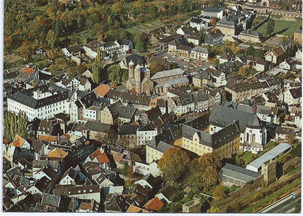 We arrived in Münstereifel (now Bad Münstereifel) in the early evening of the same day, having taken a single-track steam locomotive train to the end of the line for the journey’s last leg. My mother’s family had fled to this medieval town in the Eifel Mountains after losing their home and dry-goods store in Cologne to Allied bombs in 1944. I and my twin were born there, two months premature, brought on by the death of my maternal grandfather. My grandmother and a couple of great aunts still lived there. Walking from the train station to my grandma’s house, we passed Aunt Lisbeth, who greeted my mother with a matter of course, as if it hadn’t been 10 1\2 years since she last saw her. She and Aunt Sofie were both in their seventies, deeply Catholic, going to church every morning. The heavy incense at mass, in the first row at the insistence of “die Tanten.”