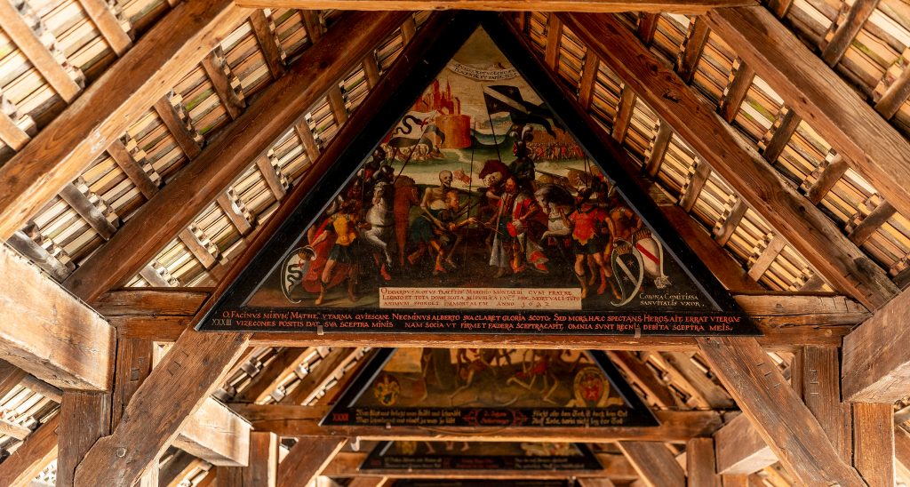 Subsequent stops included Verona, Lago Maggiore, the Simplon Pass, Geneva, Lucerne, and the Black Forest. In Geneva, we visited an old friend of my dad’s from Prague, and Michael’s godfather, who was serving on the Unite Nations world court and gave us a tour. In Lucerne, I loved the long, covered bridge, because “on each support was a written history of Switzerland.” In St. Gallen, we stopped to see the boarding school my dad had attended in the 1930s for a year.