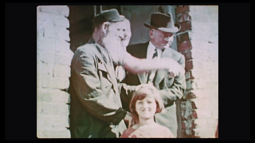 Before seeing the film, I was unclear how those three minutes could be turned into a feature-length documentary, but Kurtz and Stigter succeed. Using the tools of avant-garde filmmaking, the director not only repeatedly shows the three minutes in their entirety, while relating the story of the film, but crops, refocuses, reedits, and digitally manipulates the images so that the film seems at times in danger of falling into the abstract. But it doesn’t because while the film employs structuralist repetition, to stretch time, the way the 1960s avant-garde had, especially Ken Jacobs, it simultaneously focuses over and over again on the faces, their look into the camera, their movement out of the synagogue and into the street. While the ultra-Orthodox would not have wanted to be filmed, the narrator notes, the event still “scrambled social hierarchies,” mixing middle-class and working-class Jews, mostly young people and curious adults. One of the most emotional sequences is when the film digitally isolates in close-up every inhabitant visible in the film, creating a full-screen gallery of portraits of the dead. Holocaust researchers usually have names, not faces, while this film offers countenances as the only traces of their human existence, which Kurtz’s film memorialized. Finally, in questioning why so many had congregated in the film in and outside the synagogue, the film speculates that the famous cantor, Moishe Koussevitzky had performed that day: We hear the Cantor’s melodious voice on the track over an abstract image of b & w film grain, which eventually pulls back to reveal the darkness of the synagogue’s entrance, the diegetic source of the music, but also a metaphor for the film’s pulling life from the shadows.