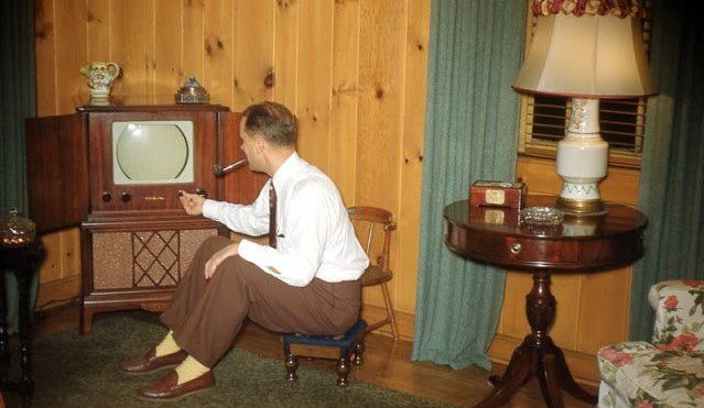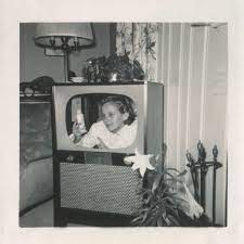 The television room in the family home thereby became a performance space, where family members could act out their identities, or different “forbidden” identities, as in the case of a woman seen in drag. At other times family musicians performed in front of the television, or through trick photography placed themselves inside television sets as if they were really on tv. Television was thus used ritualistically as a “portal object,” according to Spigel, whereby families would often photograph themselves or their children in nice clothes before going out.
