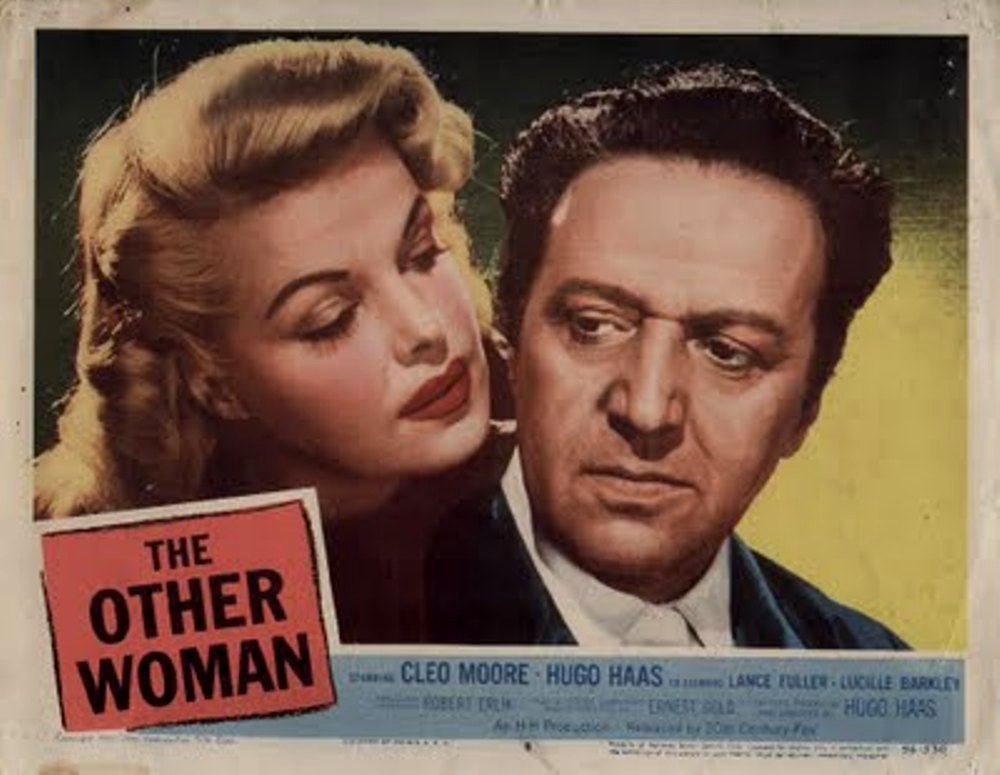 The thesis of the exhibition is that Jewish-born Haas was traumatized by both his exile from Czechoslovakia in 1939 and the murder of his beloved brother, the gifted composer Pavel Haas, and father in Auschwitz and Theresienstadt, respectively. As a result of that trauma and depression, the director’s wife, Maria Bibikoff, eventually left him, after he became infatuated with his leading actress, more than twenty years his junior, Cleo Moore. Most of his independently produced melodramas are variations on the theme of older men, played by Haas himself who form liaisons with much younger, often amoral, very blonde and buxom women.