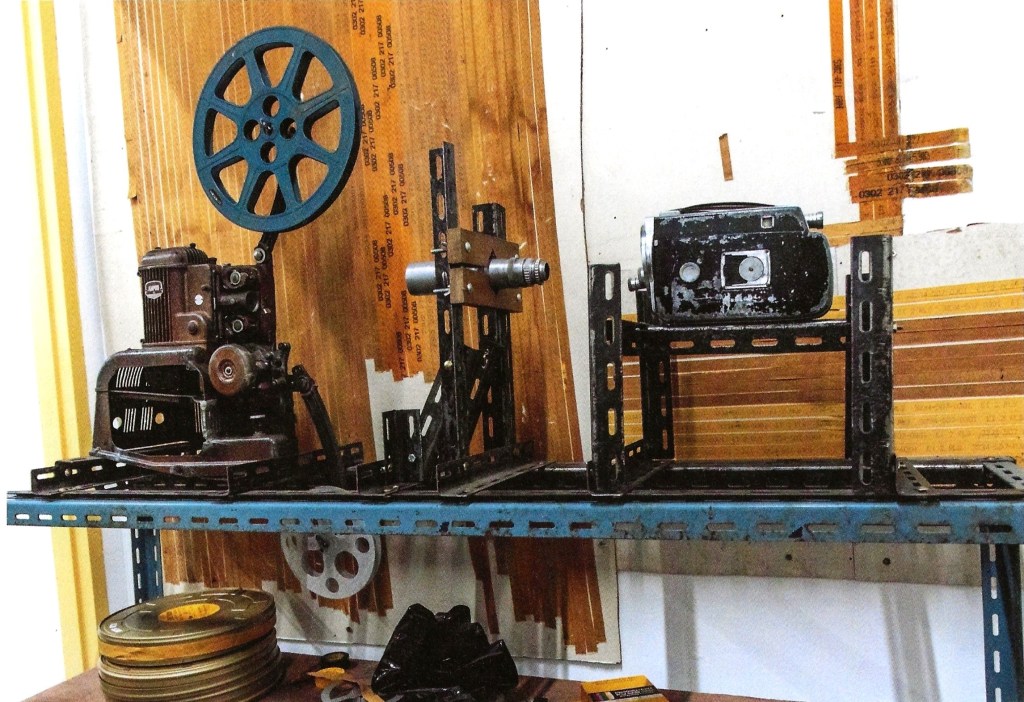The 100 encompass everything from film cameras to projectors, optical printers to VCRs, pre-cinema optical toys to mobile projection vans, editing tables, film splicers, flip books, and more, industrial-produced and home-made. Pelletier calls these technical devices “the ghostwriters of film” because “cameras and microphones are kept off-screen, the editing benches and the printers toil in the dark….” (p. 30) Until recently, film object collections were stepchildren in most moving image archives, often in deep storage, in the dark, while film restorations gleamed in the light of LCD screens. While I was at UCLA FTVA, the extensive television set and equipment archive was finally put into an archival environment and curated in open storage; Mark Quigley’s entry on the Smith 2” Videotape Splicer describes that collection’s history.