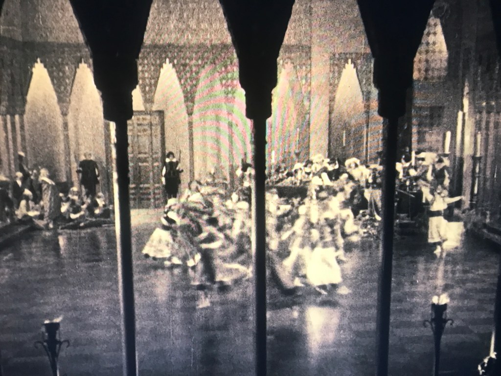 The digital restoration of The Spanish Dancer, now on view on Blu-ray, was supervised by Rob Byrne, Annike Kross, and Elif Rongen-Kaynakçi at Haghefilm. While the script indicated 253 intertitles, the Dutch and Russian language versions only had 172 each. Forty-eight percent of the final restoration came from the Dutch print, while the Soviet print contributed 29% of the new image; all 253 intertitles were recreated from either translations or the shooting script. Kevin Brownlow’s (Photoplay) contributed several crucial sequences from their 16mm print, as well as English titles that could be matched to the screenplay, while Lobster’s 16mm print provided one important sequence of 17 shots not seen elsewhere. The final restoration includes 1170 shots, while the script lists 1228 shots. It is possible that many of these shots were never produced.