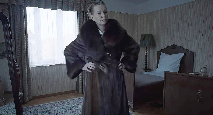 It takes a focused eye to see the horror of genocide, e.g. when Hedwig Höß tries on a full-length fur coat brought to her by an inmate, when dad chases the kids out of a creek after finding something, presumably human remains, when the oldest boy in his Hitler Youth uniform inspects a pouch of gold teeth, later locking his brother in the greenhouse and making a hissing sound, or when an inmate spreads ashes in the garden for fertilizer. Yet, when Frau Höß tends her garden or hosts pool parties for friends, the family steadfastly looks away, just like the majority of good German citizens looked away when their Jewish neighbors were deported. Hedwig quickly burns her mother’s note, after she flees without a word. The first family crisis occurs only when Höß is transferred to KZ Oranienburg, the wife insists on staying in her paradise, because country life is good for the children. She is apparently ok with her husband being almost pathologically detached, getting sex from inmates in his office, or showing more tenderness to his horse than to her.