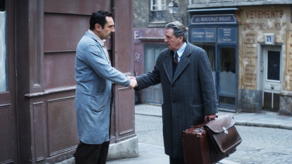 Adieu, Monsieur Haffmann opens with a close-up of a pair of legs walking on cobblestone, the metal brace on the left leg giving the clackity-clack of his gate a particular sound, and indeed the identification of the sound of footsteps on the pavement or on staircases will become a major plot element. In September 1941, more than a year after the Nazi occupation of France, a Parisian Jewish jeweler, fearful of the coming deportations, gives his shop to his employee, who has agreed to return it after the war. Such a process of “aryanizing” a business, though seemingly a good idea when Mr. Haffmann suggests it to his assistant Mr. Mercier, was in fact standard operating procedure for the Germans to confiscate and appropriate German-Jewish wealth: First you named an “Aryan” caretaker, then you forced the original owners to sell the business at a fraction of its value, whether the huge Wertheim Department stores in Berlin, or the giant Ullstein publishing house or a mom-and-pop store, as is the case here. While Haffmann’s family escapes to Southern France, he is trapped in the shop and becomes a virtual prisoner in the basement, forced to produce jewelry for his former assistant, while Mercier and his wife Blanche are living the kind of bourgeois existence upstairs they had only been able to dream about. He not only actively collaborates with the Germans, refitting jewels confiscated from Jewish citizens and earning a fortune, he ultimately denounces his former employer to the police.