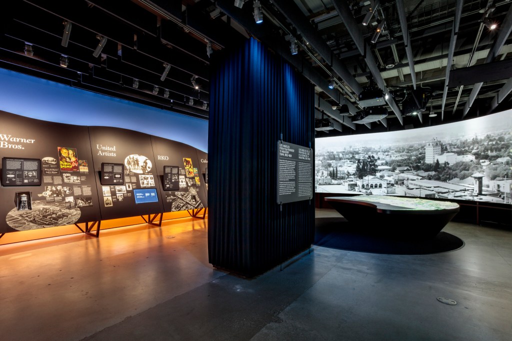 While this narrative is legible in the film, the exhibition’s first space is more impressionistic, offering images of the growth of Los Angeles from a largely uninhabited desert to a thriving metropolis of movies, during which the population increased 12-fold between 1902 and 1929 and movies became its primary business. The wall panels dedicated to the eight major studios follow, offering photographs of the physical studios and stars, film posters, and mini-portraits of their Jewish founders. The film is a thoughtful and easily understood documentary of the rise of Hollywood and its Jewish moguls. Overall, the exhibition is an excellent introduction to classic Hollywood through the 1950s and its Jewish origins, especially for non-specialists, and could easily travel to libraries and other public spaces.
