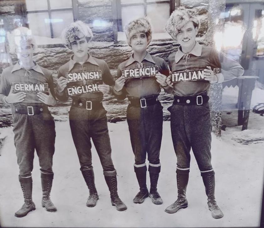 Another great photograph depicts in costume the four actors, playing Louis le Bey aka Monsieur le Fox in five different language versions of Hal Roach Studio’s Men of the North/Monsieur Le Fox (1930): in German with John Reinhardt, in Spanish and English with Gilbert Roland, in French with Anré Luguet, and in Italian with Franco Corsaro. Except for the English version, none of the other versions unfortunately survive. Indeed, the survival rate of various language versions, produced by Hollywood is dismal.