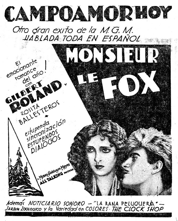 This exhibition is well worth a visit. Hopefully, more films from Spanish Hollywood will be released on video, allowing the public to rediscover Carlos Gardel, José Mojica, Antonio Morena, Ramón Novarro, Lupe Vélez, Lupita Tovar, and Conchita Montenegro.