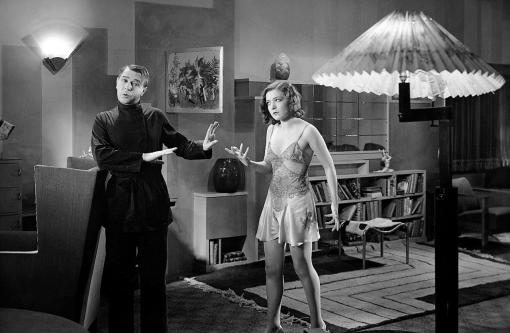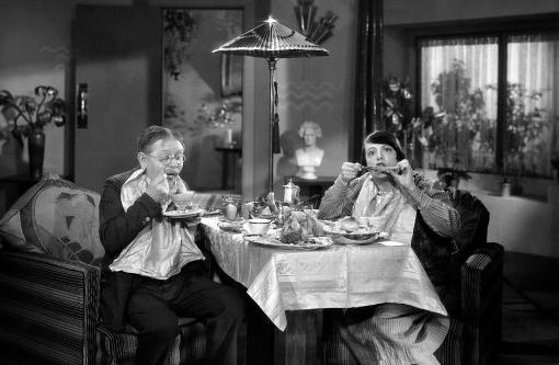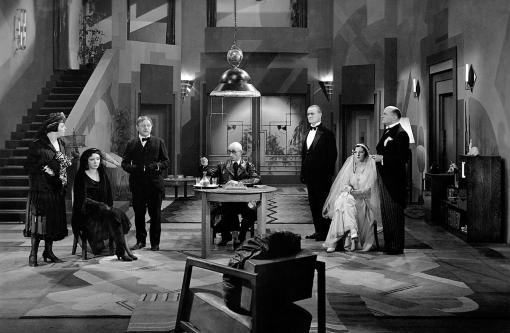 All four musical numbers, written by Hans May with lyrics by Jean Gilbert, feature Eggerth’s operatic voice, in particular in Eggerth and Kohlmann’s dueling duet, “The Groom’s Widow,” where each claims to be the true heir. The film seemingly begins in a classroom, where the students sing “ABC, Love doesn’t hurt,” the number morphing into a cabaret stage when the students tear off their frocks to dance; a final chorus /curtain call reprises the opening Schlager, “My Heart is a Salon for Beautiful Women.” The film’s broad comedy involves not only a war between the romantic leads, but also the intrusion of Fay’s uncouth, petit bourgeois parents, who immediately move into George’s mansion, featuring a stiff and anal-retentive butler, and a police detective who solves crimes through séances, a parody of Dr. Mabuse. Mashed into the discontinuous action are other genres: George and Bill believe they are seeing ghosts, a parody of ghost/horror films; when George’s valuables are stolen from his safe because Fay gets distracted, Fay is falsely accused, the plot briefly turns into a Hitchcokian crime drama; not surprising, given that scriptwriter Walter Mycroft, wrote Hitchcock’s Murder (1930), and co-scriptwriter Frederick J. Jackson started his career at Lubin in 1915.