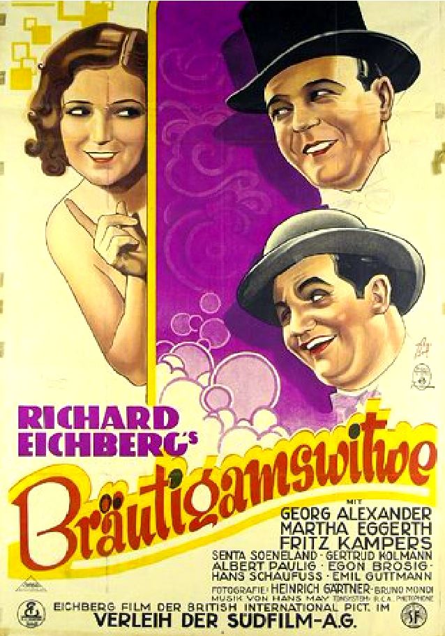 The independent film producer/director Richard Eichberg produced his films up to early 1928 at UFA’s Babelsberg Studios, then moved his base of operation to London’s Elstree Studios and British International Pictures, although he also continued to produce films in Berlin. In 1930, Eichberg hired the Hungarian coloratura soprano, Marta Eggerth, in her first sound film, Die Bräutigamswitwe/The Groom’s Widow (1931), after she had starred in a part-talkie in Budapest earlier that year. By that time, the 18-year-old had already sung on some of the major opera stages of Europe, including in Max Reinhardt’s 1929 staging of Die Fledermaus. Although identified in the credits as a “sound film farce,” The Groom’s Widow includes at least four musical numbers, while the film musical features anarchic comedy, a mixture of genres, and a discontinuous cabaret-style plot, similar to contemporary UFA musicals. Eggerth’s film career would take off in Berlin, which continued – even though she was Jewish – after Hitler’s rise, before emigrating to Hollywood with her singing partner, Jan Kiepura.