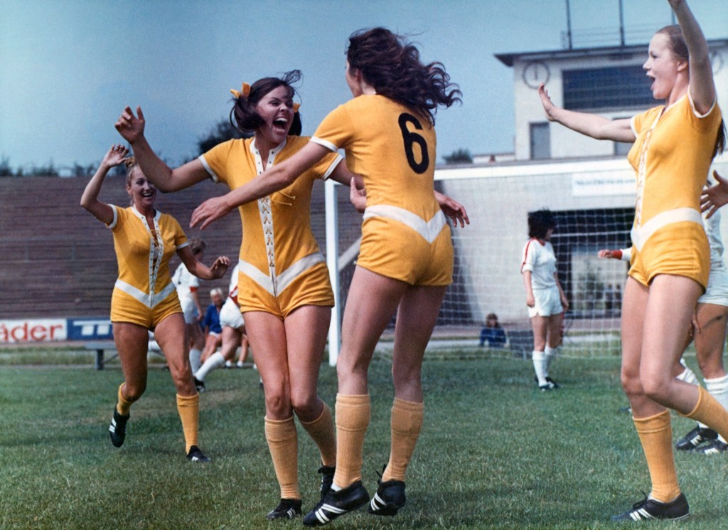 Don’t Cheat, Darling (1973, Joachim Hasler) starts out visually like a West German musical in a small Bavarian town, but when Young Pioneers join the parade, it’s clear this is East of the Elbe. The town is crazy about Fussball, engendering a town-wide war between the sexes, led by a new girl’s technical college director and the town mayor. Hardly a Communist in sight, only certain termini technici reveal the film’s location, as male footballers and nubile female students face off in energetically choreographed dance numbers.