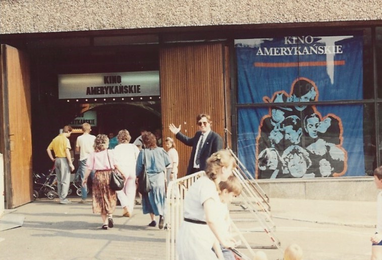 A little more than a year later, my wife and I were in Madrid on vacation when David Paul tracked me down again. His “Filmmaking in America” docent trainer had to cancel days before the Polish iteration opened in Katowice. After getting permission from the George Eastman Museum, I flew to Kraków in June 1990, where a day later, I began training local Polish students. The opening and subsequent interviews with the press went well. The Communists had relinquished power only months earlier, so Poland was a bit like the Wild West, a country in political limbo. Prostitutes formed a gauntlet in my hotel lobby, drugs were easily obtainable. I did have a chauffeur and a car at my disposal. I asked him to drive me to Auschwitz, but that is another story. With the Fall of Communism in Eastern Europe, the USIA’s days were also numbered.