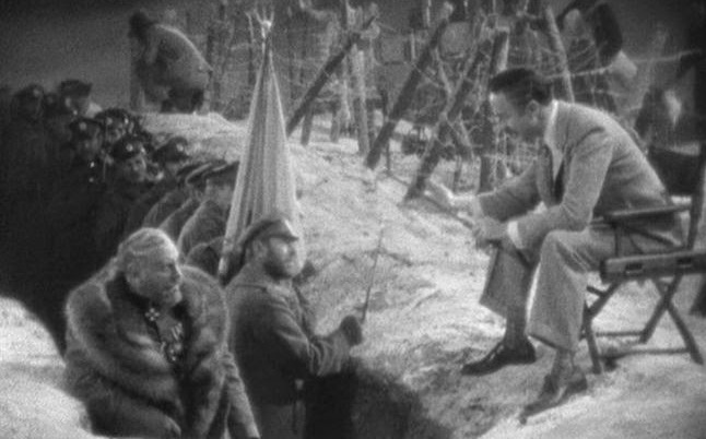 A still photograph from Joseph von Sternberg’s The Last Command (1928) perfectly captures the mixture of reality and fantasy, of historical truth and aesthetic expression that is so much a part of Hollywood cinema and its White Russian colony: Standing in a World War I trench, Emil Jannings in costume as a Tsarist general looks intensely off screen, his sable drawn, the movie extra’s degradation already marking his face, his actions frozen in his own fantasy. He is seen almost incidentally at the bottom Left side of the image, while somewhat incongruously, the greater part of the image shows “Russian” soldiers standing relaxed on the set below a barbed-wire cordon, as William Powell, playing the movie director and former victim of the general, chats with them from his director’s chair above. It is the ironic pathos of defeat and degradation which captures our imagination in this story of royal blood in exile in Hollywood, of fabulous wealth and power lost, of a fall from grace to the ordinariness of everyday life: Grand Duke Sergius Alexander of the Imperial Russian Army forced to work as a Hollywood extra in films about the very Revolution to which he had fallen victim. Almost a true story.