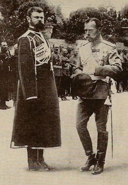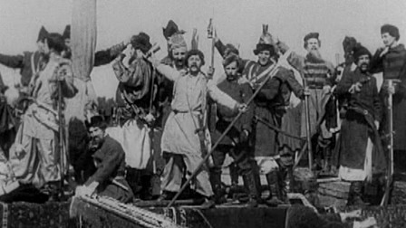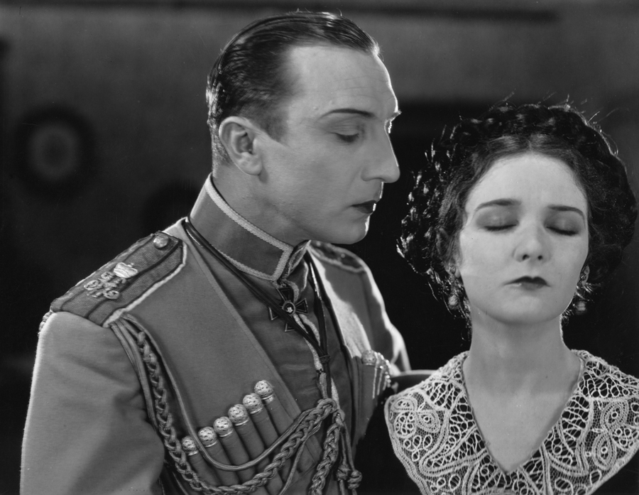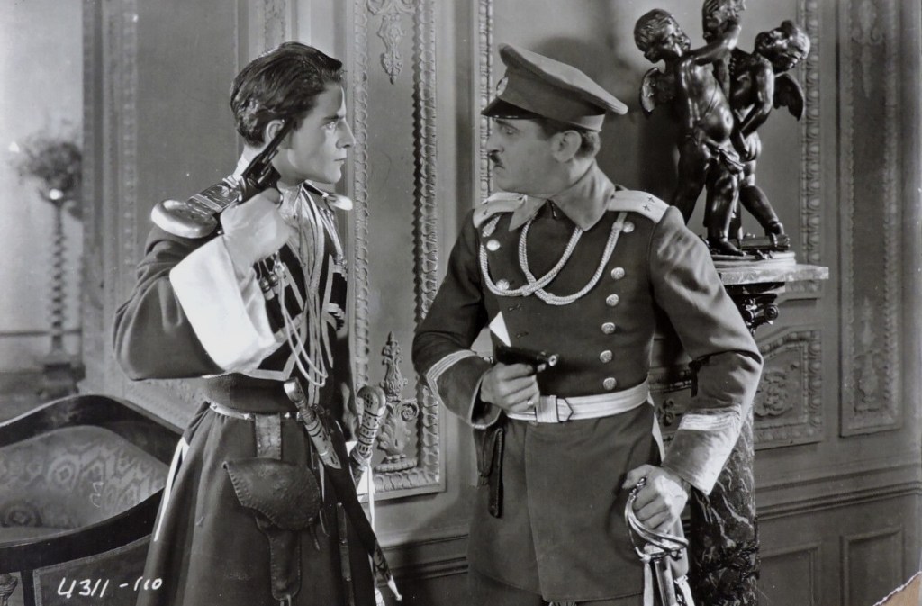 After the Russian Revolution and the anti-Communist Palmer Raids in America, Hollywood fell in love with Russia before the Revolution, paying homage to the autocratic regime of the Romanovs, the same way it adored the ante-Bellum, racist South. Russian movies were in, and Russian exiles were happy to oblige. One of the minor characters in The Last Command is played by Sam Savitsky, formerly General Viacheslav Savitsky, above in uniform with Czar Nicholas II. Exiled to the Hollywood backlot, the ex-officer continued to play “bit parts” for over twenty years in films, like The Scarlet Empress (1932), Song of Russia (1944), and Northwest Outpost (1947). Sternberg himself reports that “I had fortified my image of the Russian Revolution by including in my cast of extra players an assortment of Russian ex-Admirals and generals, a dozen Cossacks, and two former members of the Duma…and an expert on borscht by the name of Kobyliansky.” Nicholas Kobyliansky, who received a screen credit on The Last Command as a technical advisor, was also hired in the same capacity for Lubitsch’s The Patriot (1928). Through intermediaries, he hired almost 600 Russians from Boyle Heights, an L.A. suburb, where the exiles congregated, only to nearly cause a riot when only half that many were needed for the film. Several White Army generals supplied local color when a Russian landscape was required: Major General Alexander Ikonnikoff, Gen. Theodore Lodijenski, Maj. Gen. Michael N. Pleschnikov, Maj. Gen. Bogomoletz, Lieutenants George Blagoi and Gene Walski were seen in films such as The Eagle (1925), Into Her Kingdom (1926), Midnight Sun (1926), The Cossacks (1928), or Rasputin and the Empress (1932).