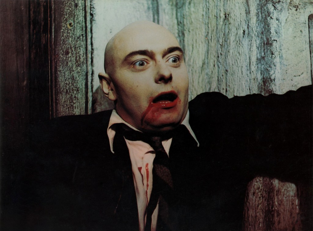 Produced by Rainer Werner Fassbinder who is featured in a supporting role, The Tenderness of Wolves/Zärtlichkeit der Wölfe is, like so much of Fassbinder’s early cinema, beholden to genre, in this case, horror and crime, but more akin to art cinema and melodrama. The director, Ulli Lommel, a Fassbinder collaborator who played in no less than twelve of the master’s films, casts Fassbinder regular Kurt Raab (Why Does Herr R. Run Amok?, 1970) in the title role of the Fritz Harrmann, the notorious Hannover serial killer who in the 1920s cut up his 27 young male victims and was rumored to have sold their human flesh to local restaurants as beef and pork. While Fritz Lang’s M (1931) transformed Haarmann into a child murderer who can’t help himself, Raab’s pederast is a lonely gay man, abandoned by his male lover and looking for love; he kills when he is disappointed. He lures vagrant young teens to his flat with the promise of food and work, then murders them by strangulation or biting into their adam’s apple, earning him the title of “Vampire of Hannover.” However, all but one of the murders are committed off screen, the major focus of the film being on Haarman’s relations with his non-biological family of pimps, prostitutes, and bar owners, and his attempts with his former lover to earn money through begging, police informing and other shady activities. Not surprisingly, the extended family consisted of Fassbinder regulars seen as supporting roles in numerous other films, including Margit Carstensen, Ingrid Caven, Brigitta Mira, Wolfgang Schenk, and Fassbinder himself as an unsavory pimp.